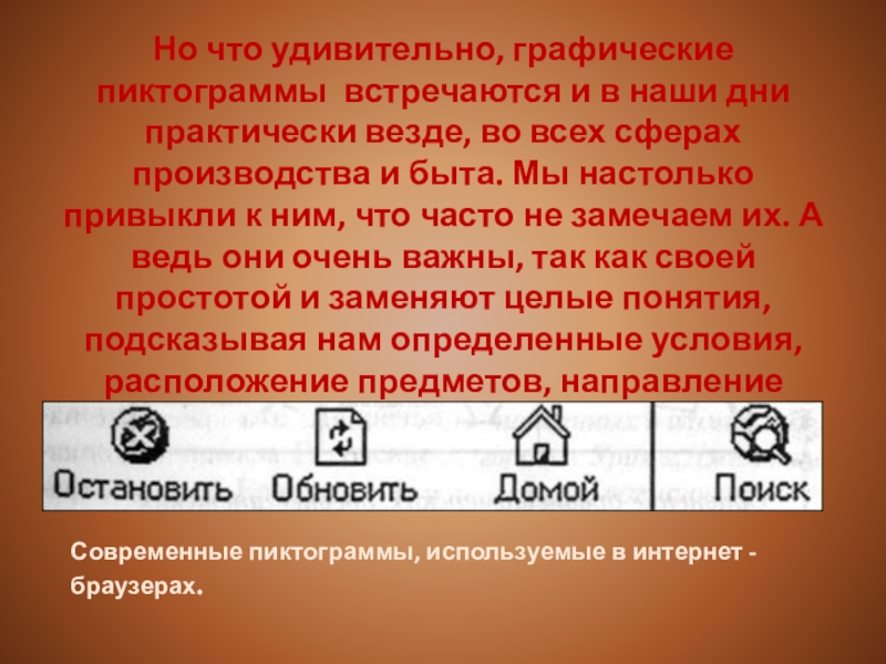 Современные пиктограммы, используемые в интернет - браузерах.