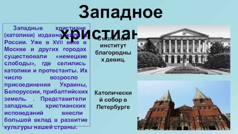 Какую роль для России сыграли люди, исповедующие католическую и протестантскую веру, иудаизм, ислам и буддизм.