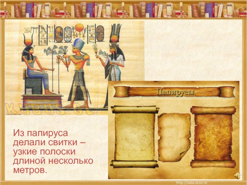 Слайд 6Из папируса делали свитки – узкие полоски длиной несколько метров.