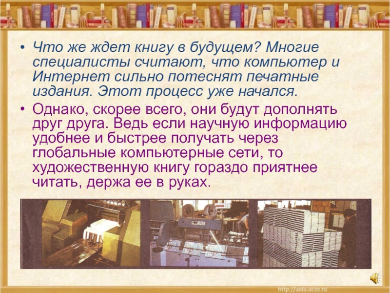Что же ждет книгу в будущем? Многие специалисты считают, что компьютер