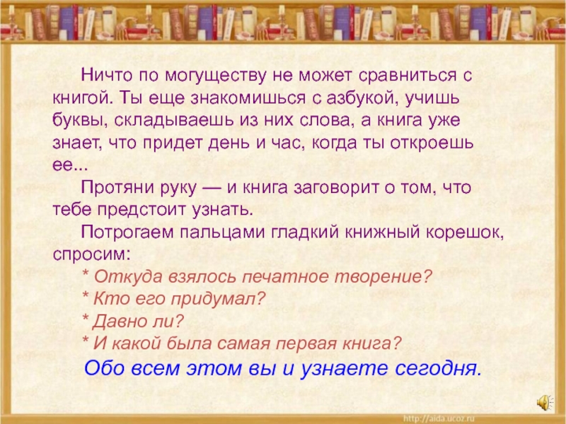 Слайд 3 Ничто по могуществу не может сравниться с книгой. Ты еще знакомишься