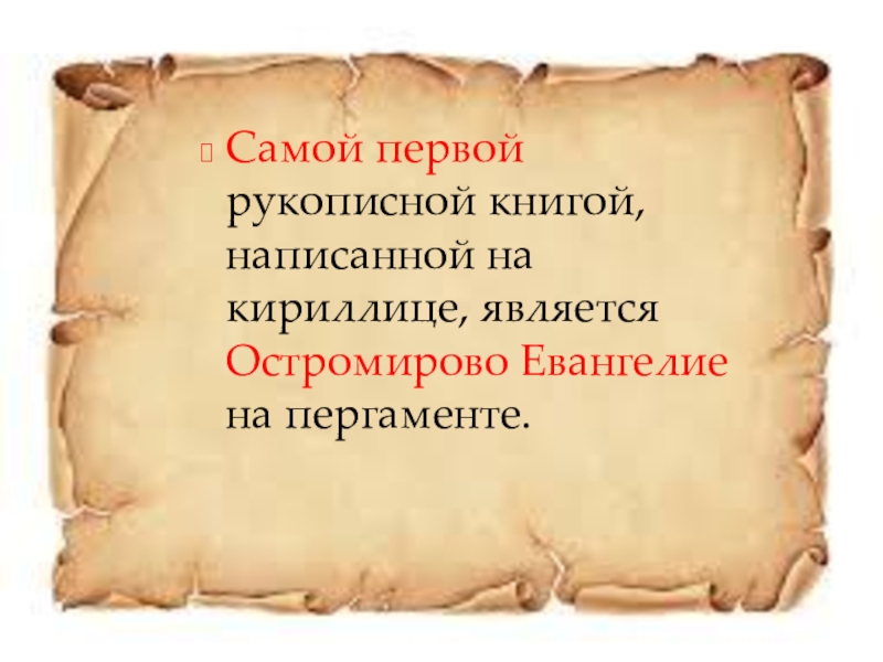 Слайд 7Самой первой рукописной книгой, написанной на кириллице, является Остромирово Евангелие на