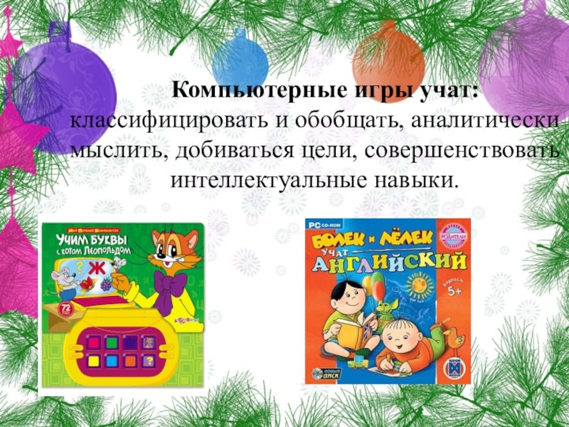 Компьютерные игры учат: классифицировать и обобщать, аналитически мыслить, добиваться цели, совершенствовать интеллектуальные навыки.