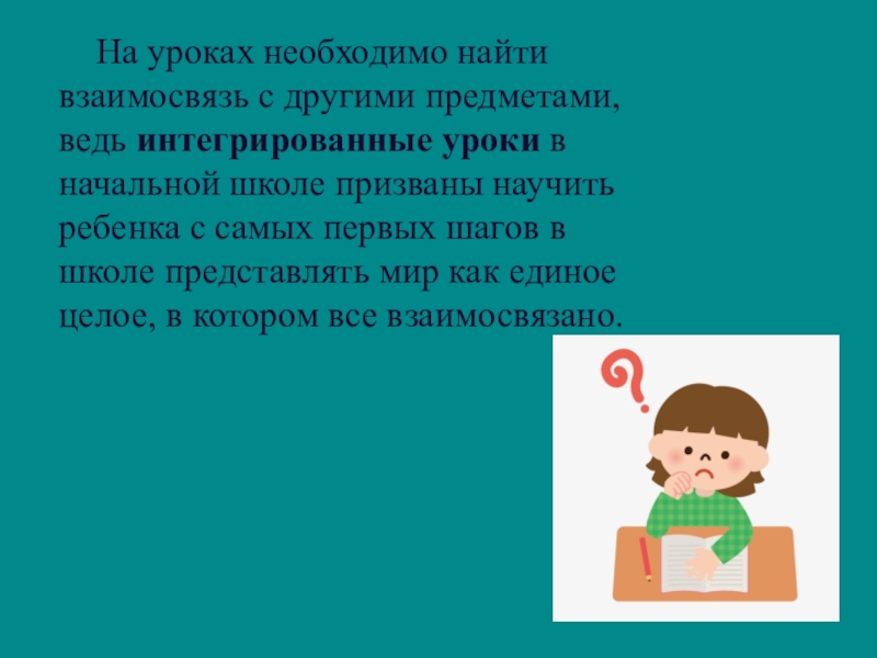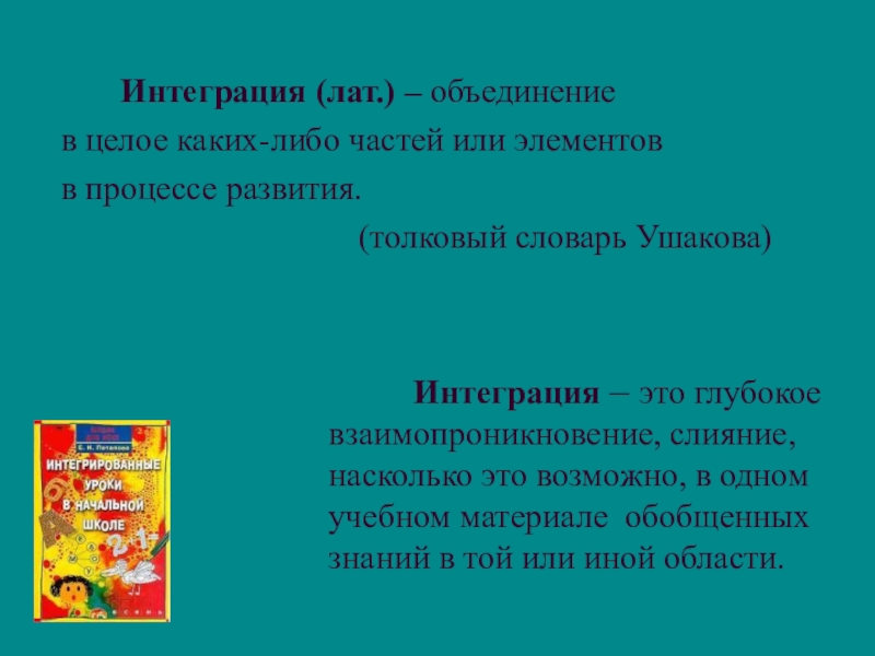 Интеграция – это глубокое взаимопроникновение, слияние, насколько это возможно, в одном учебном материале обобщенных знаний в той или иной области.