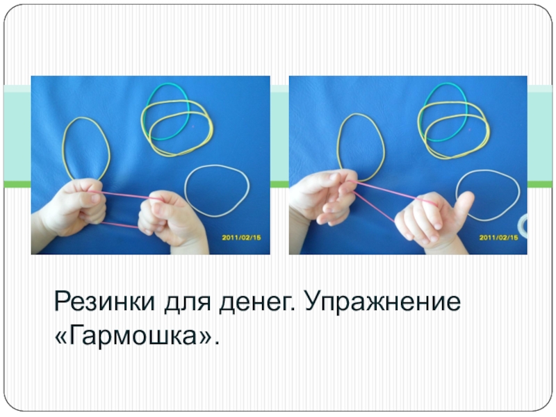 Слайд 28Резинки для денег. Упражнение «Гармошка».