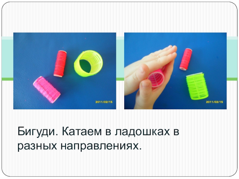 Слайд 22Бигуди. Катаем в ладошках в разных направлениях.