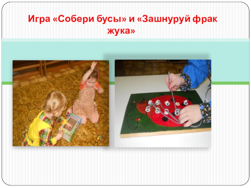 Слайд 14 Игра «Собери бусы» и «Зашнуруй фрак жука»