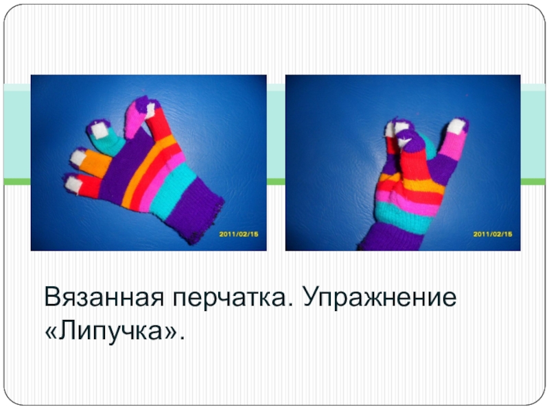 Слайд 23Вязанная перчатка. Упражнение «Липучка».