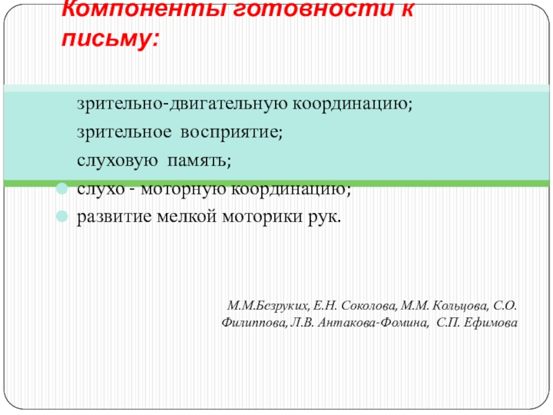 М.М.Безруких, Е.Н. Соколова, М.М. Кольцова, С.О.Филиппова, Л.В. Антакова-Фомина, С.П. Ефимова