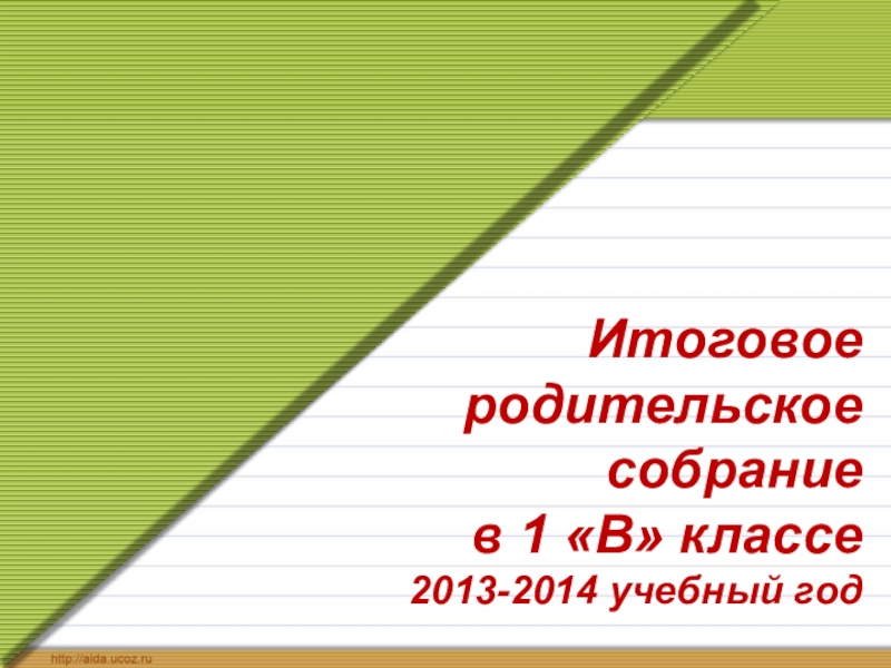 Слайд 1Итоговое родительское собрание в 1 «В» классе 2013-2014 учебный год