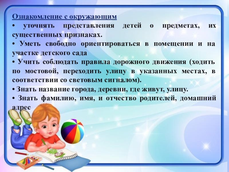 • Знать фамилию, имя, и отчество родителей, домашний адрес
