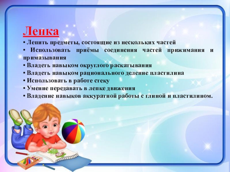 • Владение навыков аккуратной работы с глиной и пластилином.