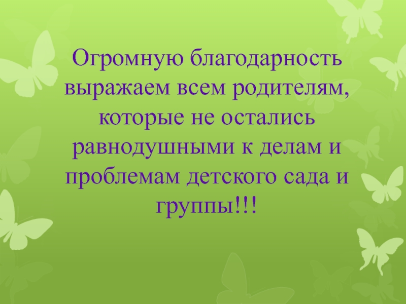 Слайд 16Огромную благодарность выражаем всем родителям, которые не остались равнодушными к делам