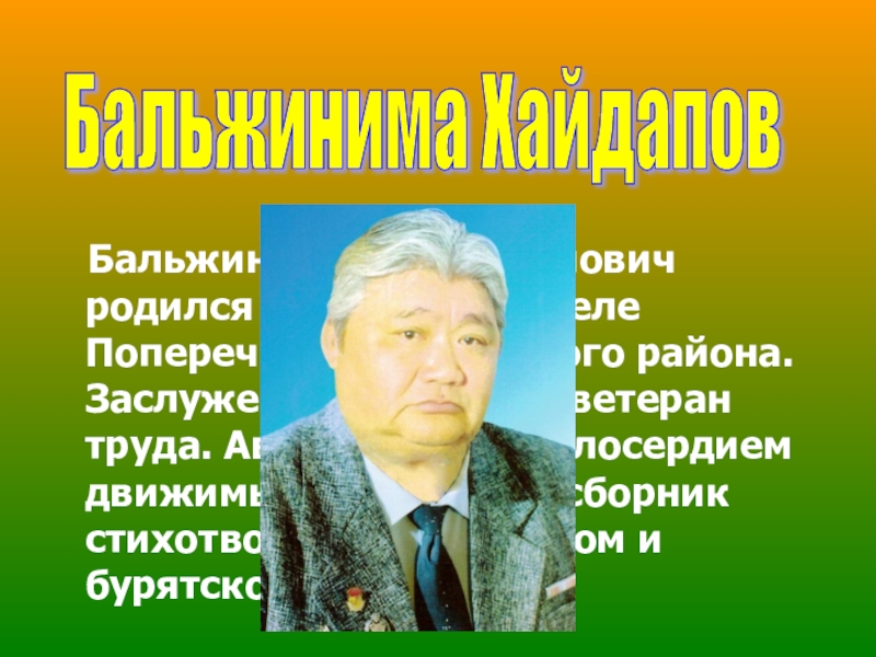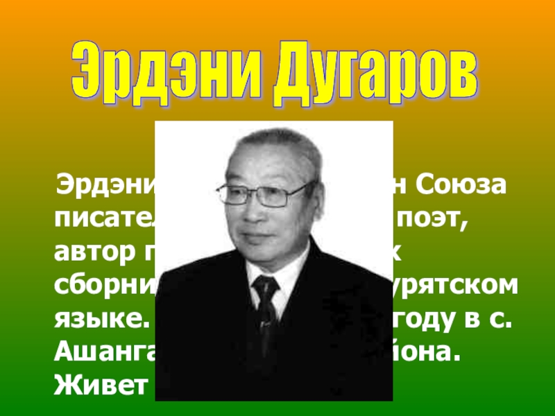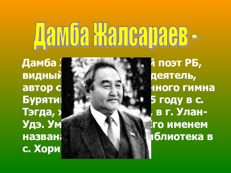 Слайд 12 Дамба Зодбич народный поэт РБ, видный общественный деятель, автор