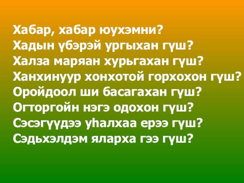 Сэсэгγγдээ уһалхаа ерээ гγш?