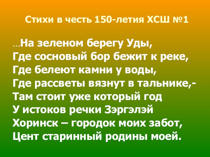 Слайд 7Стихи в честь 150-летия ХСШ №1