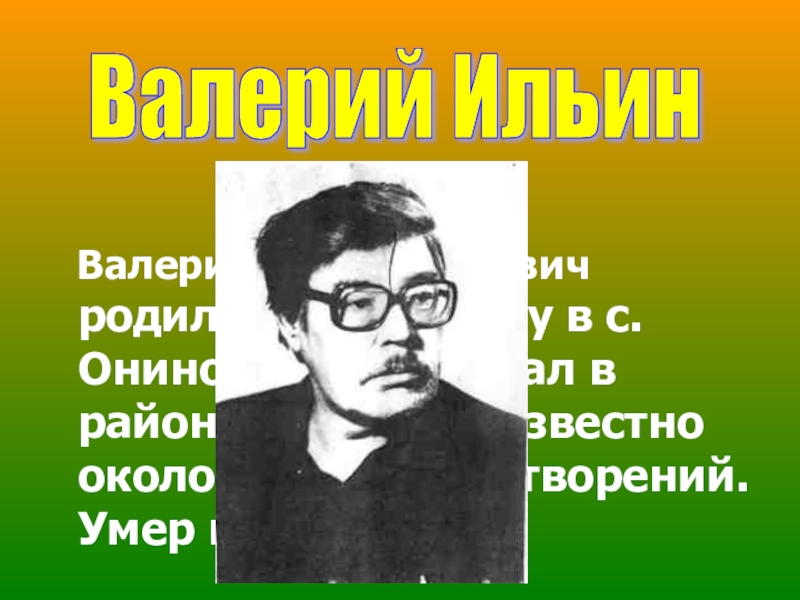 Слайд 14 Валерий Александрович родился в 1938 году в с. Ониноборск.