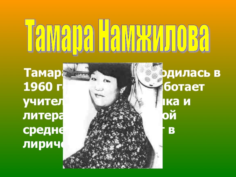 Слайд 30 Тамара Михайловна родилась в 1960 году в Якутии. Работает