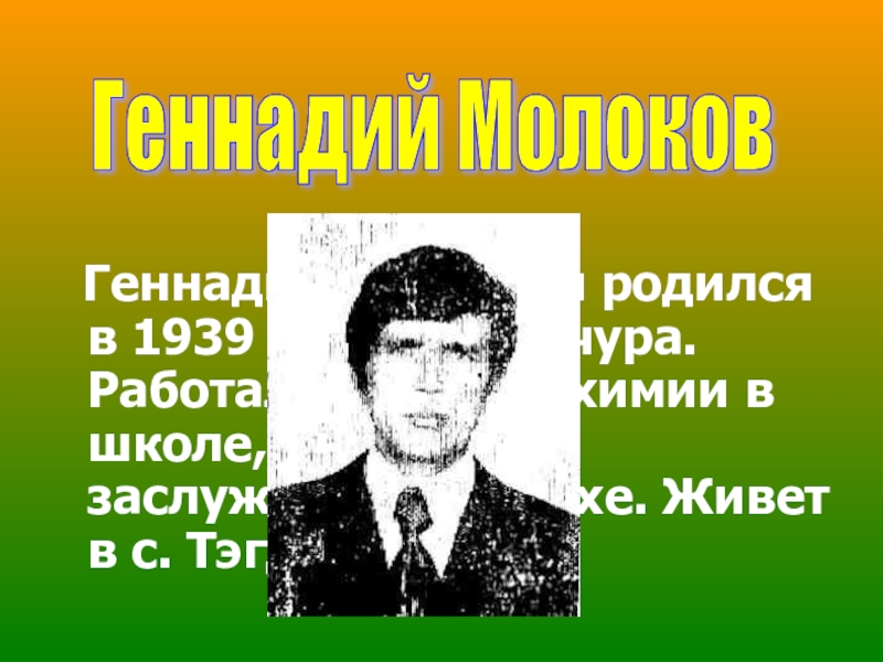 Слайд 23 Геннадий Петрович родился в 1939 году в с. Бичура. Работал