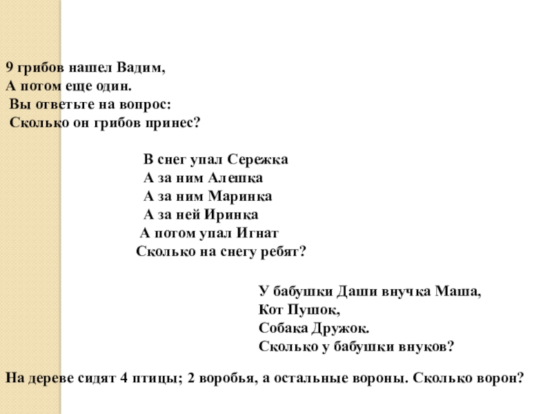 На дереве сидят 4 птицы; 2 воробья, а остальные вороны. Сколько ворон?