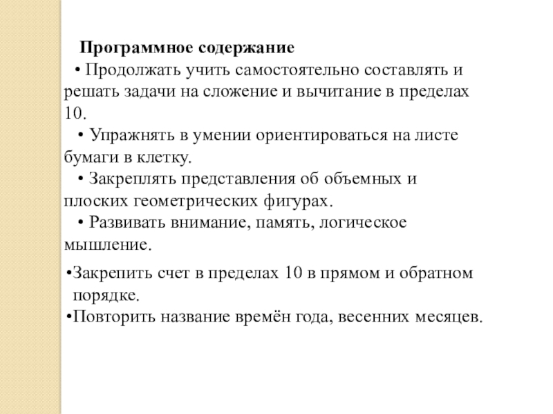 Закрепить счет в пределах 10 в прямом и обратном порядке.