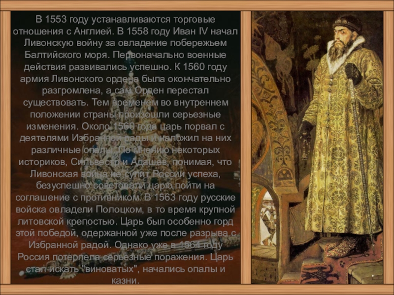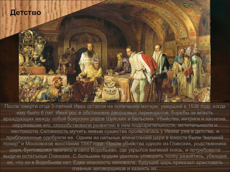 года), первый русский царь (с 1547 года), сын великого князя Василия III и Елены Васильевны Глинской.