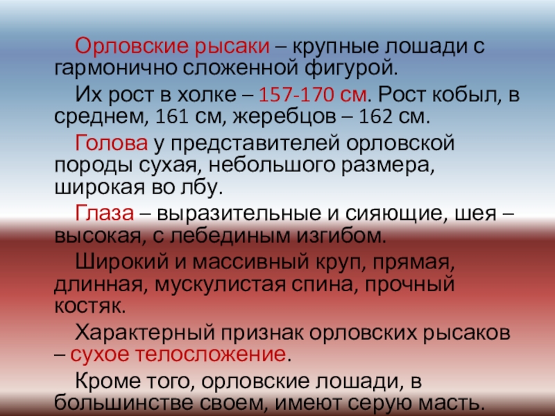 Презентация, доклад на тему Из истории орловских рысаков и поэтапное рисование лошади.