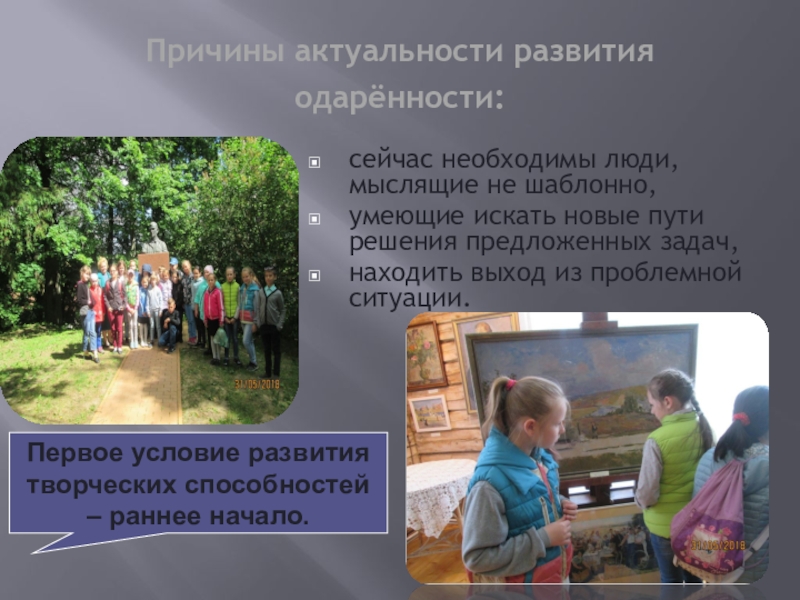 творческих способностей – раннее начало.