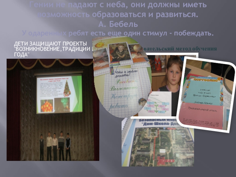 Дети защищают проекты "Возникновение,традиции Нового года"