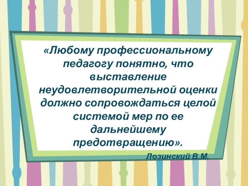 Слайд 3«Любому профессиональному педагогу понятно, что выставление неудовлетворительной оценки должно сопровождаться целой