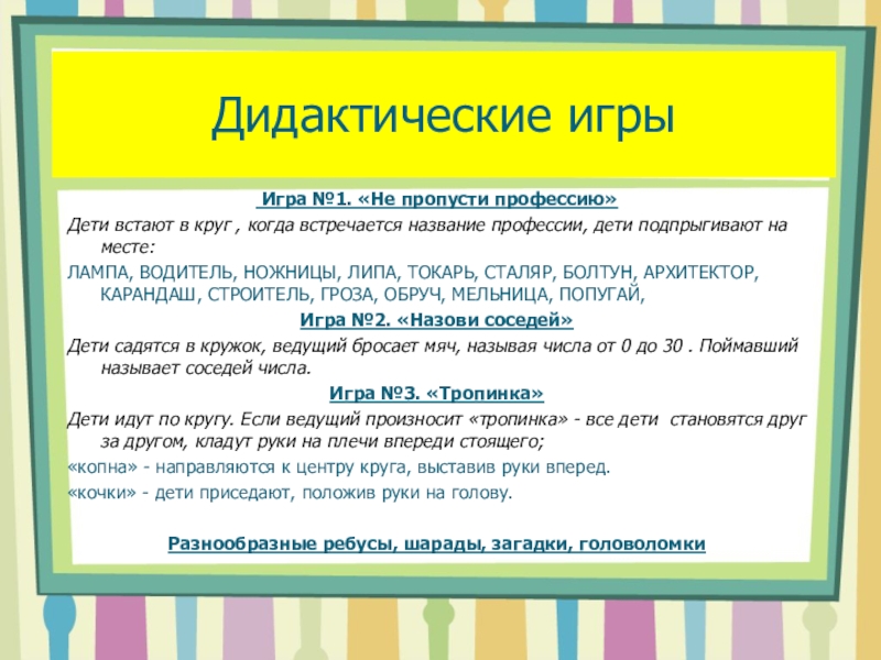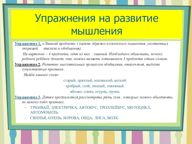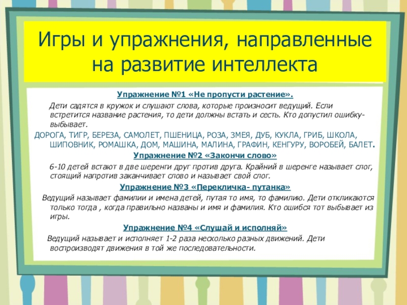 Слайд 16Игры и упражнения, направленные на развитие интеллекта