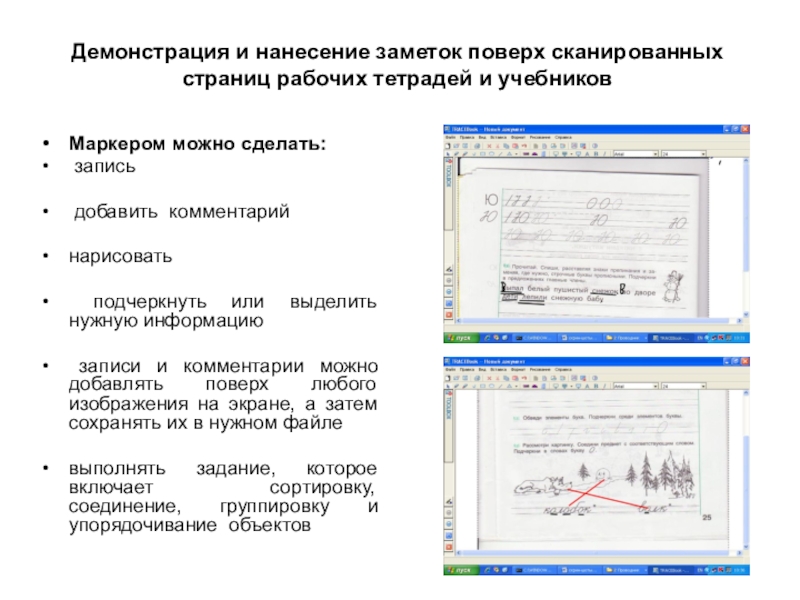 Слайд 9Демонстрация и нанесение заметок поверх сканированных страниц рабочих тетрадей и учебников