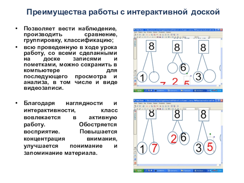 Благодаря наглядности и интерактивности, класс вовлекается в активную работу. Обостряется восприятие. Повышается концентрация внимания, улучшается понимание и запоминание материала.