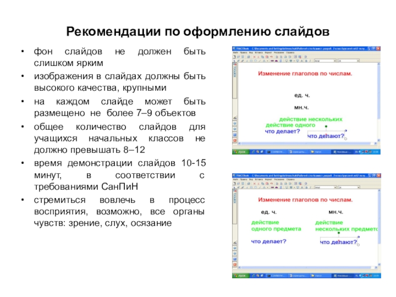 общее количество слайдов для учащихся начальных классов не должно превышать 8–12