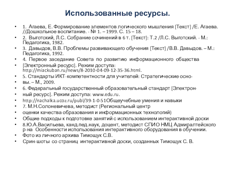 1. Агаева, Е. Формирование элементов логического мышления [Текст] /Е.