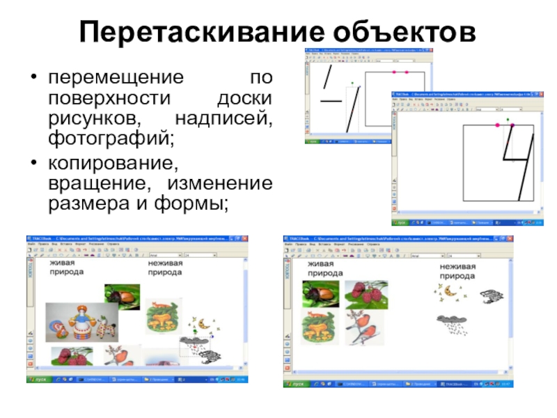 перемещение по поверхности доски рисунков, надписей, фотографий;