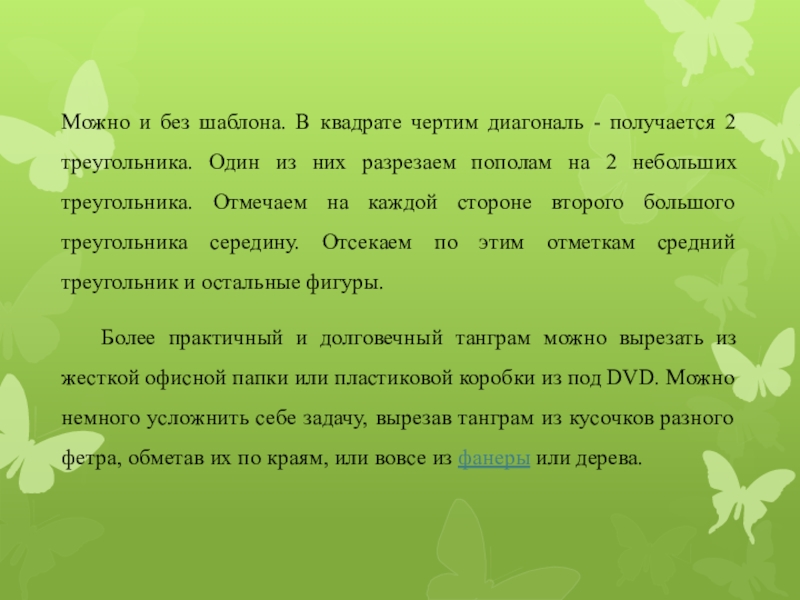 Слайд 1Изготовление головоломки «Танграм» для дошкольников