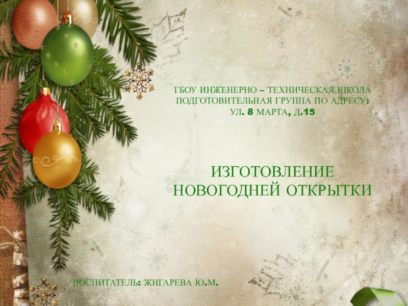 ВОСПИТАТЕЛЬ: ЖИГАРЕВА Ю.М.