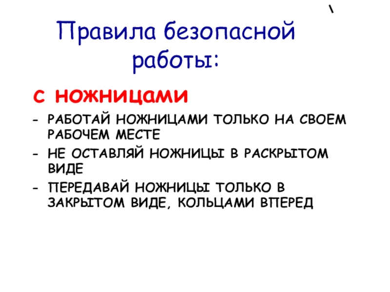 ПЕРЕДАВАЙ НОЖНИЦЫ ТОЛЬКО В ЗАКРЫТОМ ВИДЕ, КОЛЬЦАМИ ВПЕРЕД