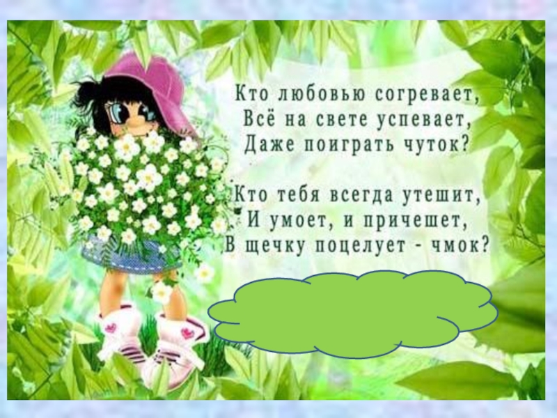 Мамочке подарокОльга ЧусовитинаИз цветной бумаги Вырежу кусочек. Из него я сделаю Маленький цветочек.Мамочке подарок Приготовлю я. Самая