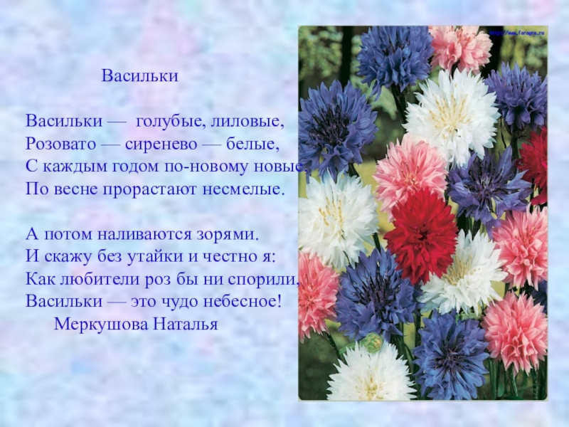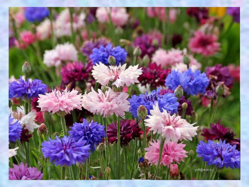 ВасилькиВасильки — голубые, лиловые, Розовато — сиренево — белые,
