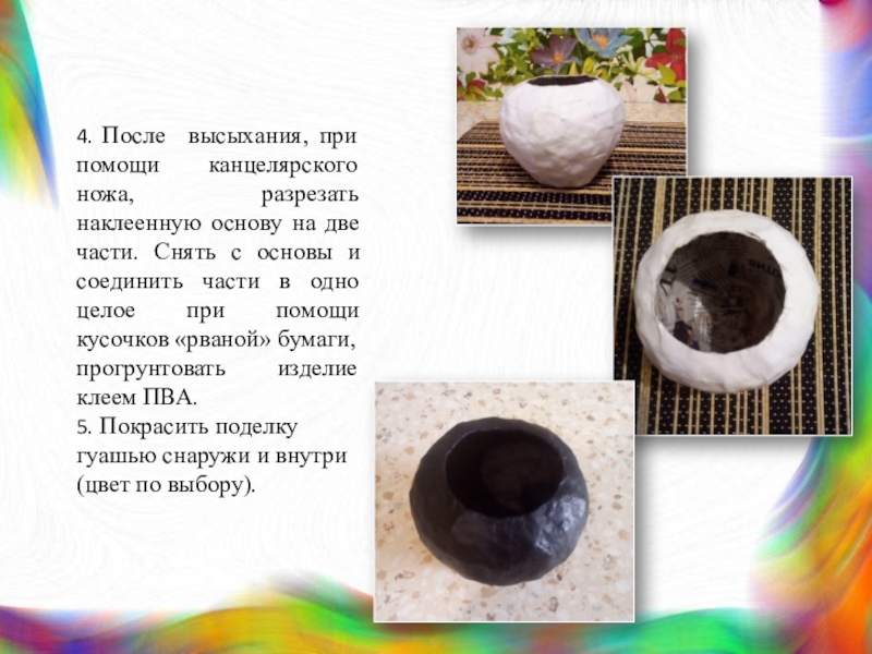 Формировать представление детей о технике папье-маше, побуждать к изготовлению поделки в данной технике;