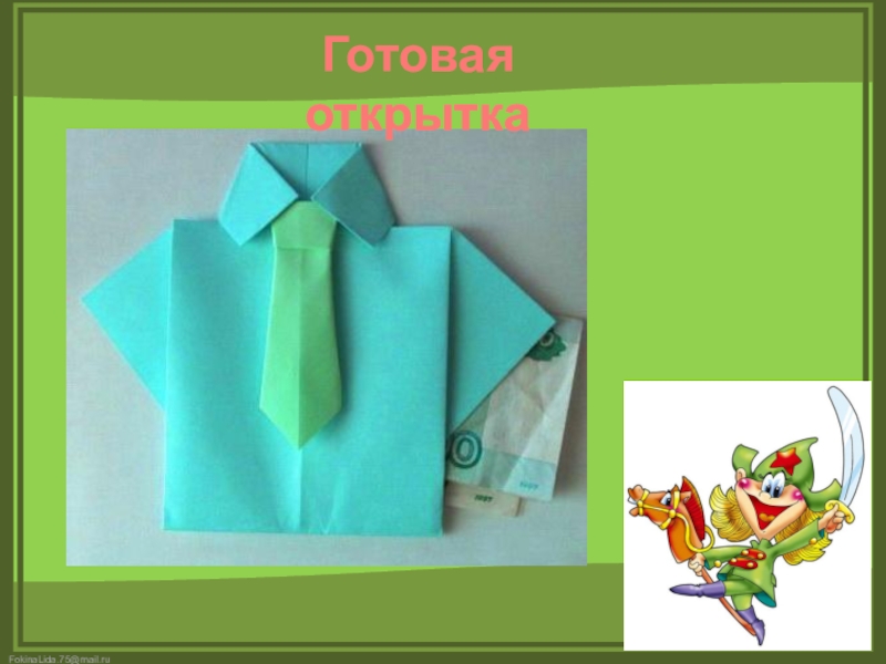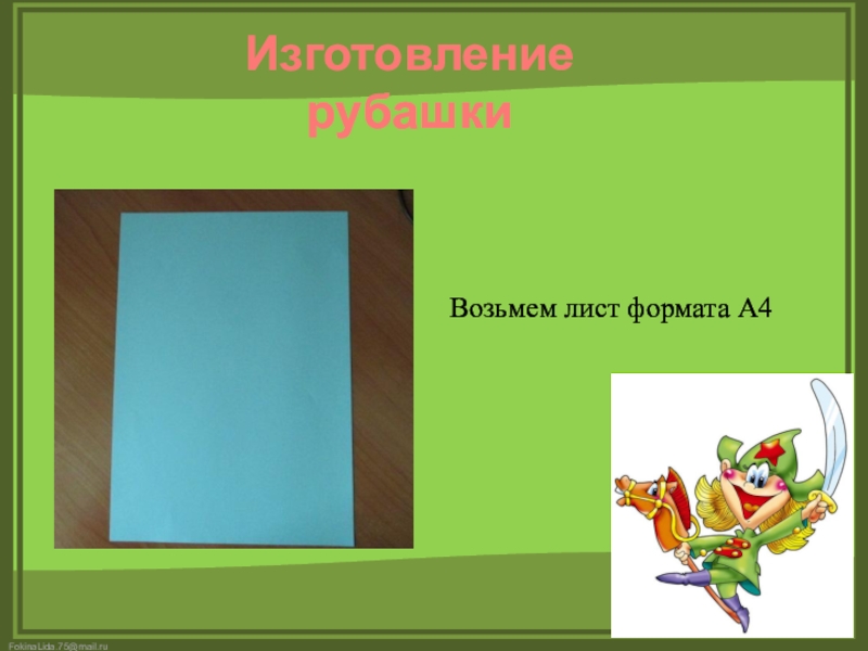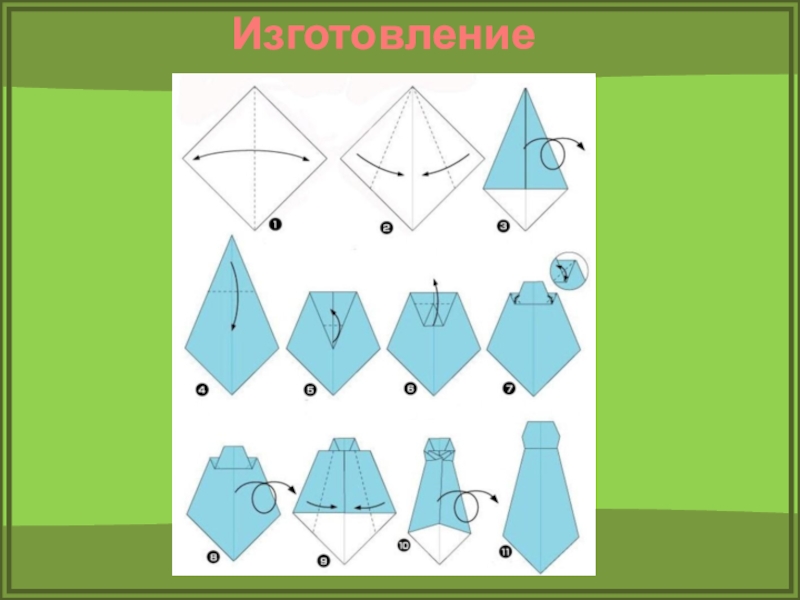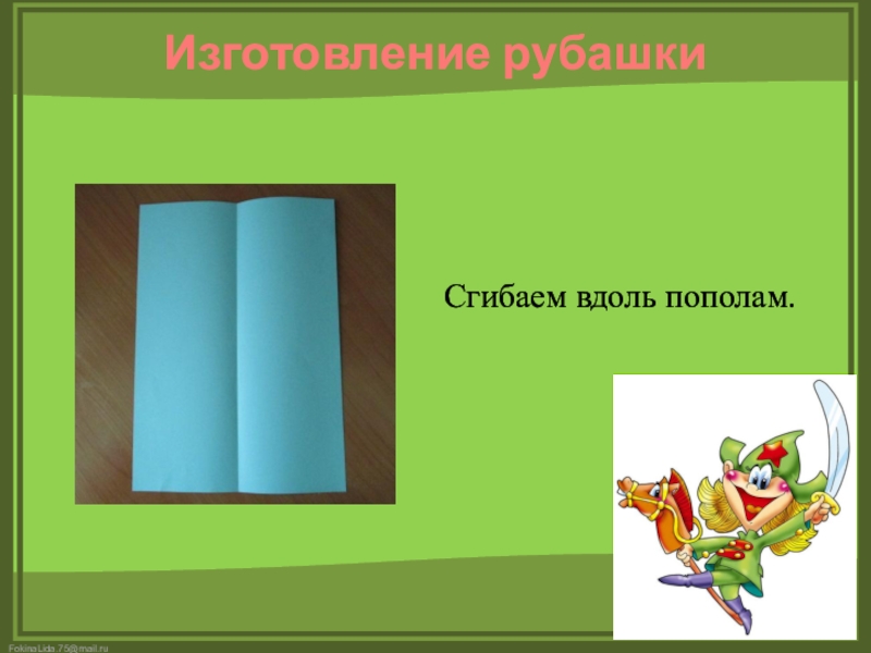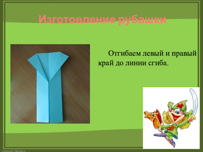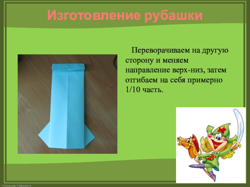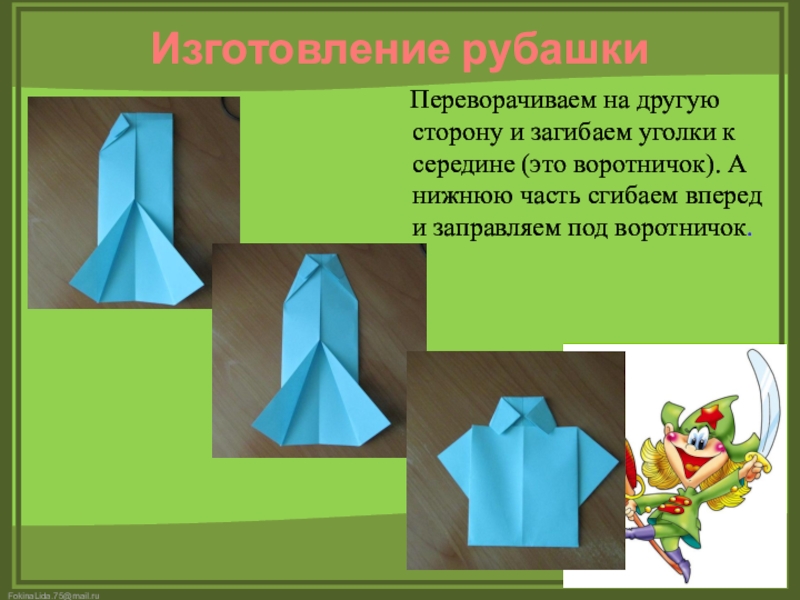 Изготовление рубашки   Переворачиваем на другую сторону и загибаем уголки к середине (это воротничок). А нижнюю