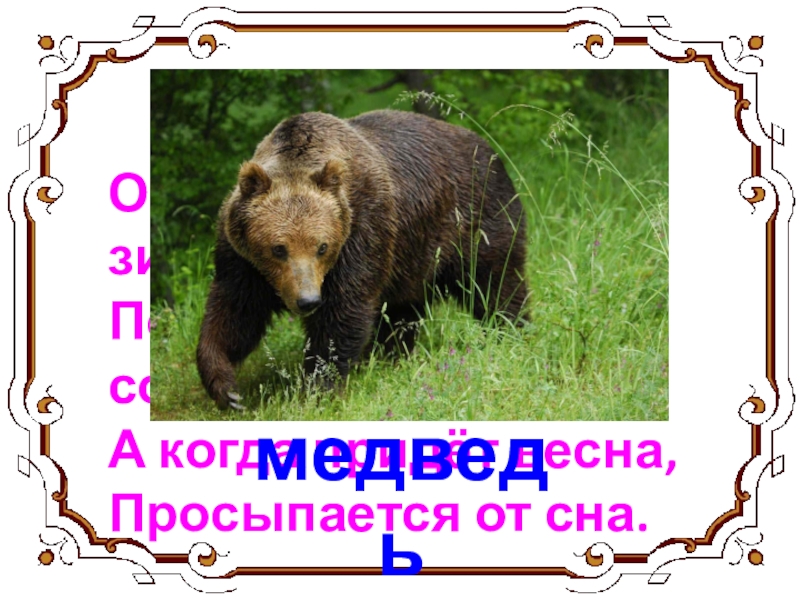 Залегает медведь в берлоге ранней зимой. Тепло, уютно там. Ударит мороз – уснёт медведь.