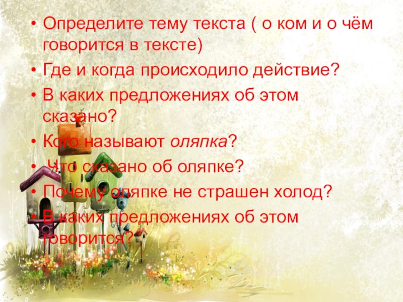 Слайд 3Определите тему текста ( о ком и о чём говорится в
