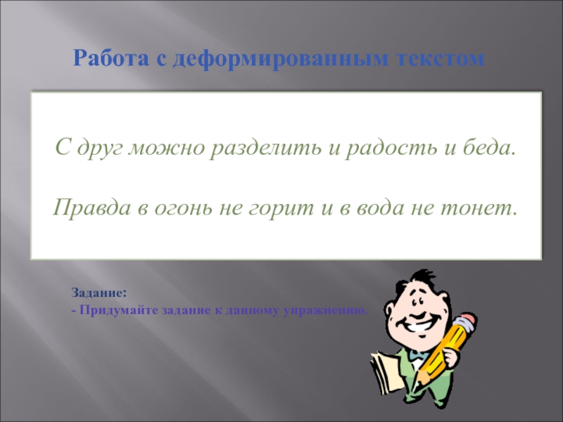 Это сайт презентаций, где можно хранить и обмениваться своими презентациями, докладами, проектами, шаблонами в формате PowerPoint с другими пользователями. Мы помогаем школьникам, студентам, учителям, преподавателям хранить и обмениваться учебными материалами.