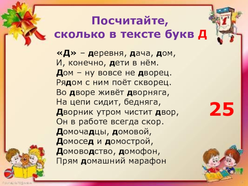 сколько в тексте букв Д