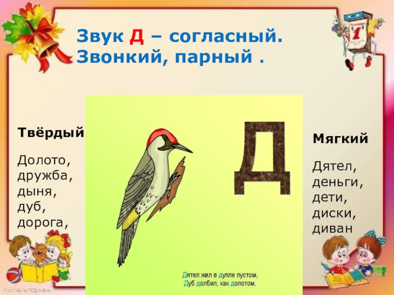 Произнесите первый звук в первом слоге – Д