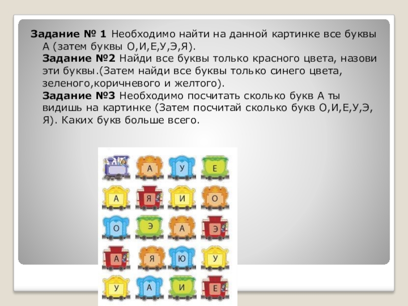 Слайд 8Задание № 1 Необходимо найти на данной картинке все буквы А (затем