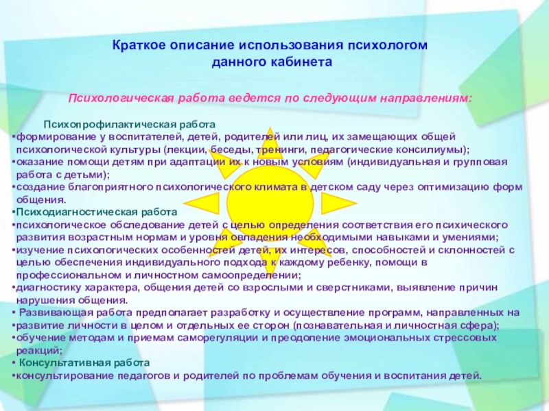 Краткое описание использования психологом